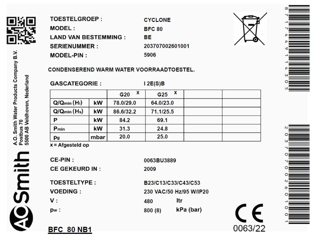 Het serienummer is terug te vinden op het type plaatje; Een sticker op het toestel dat er ongeveer zo uitziet (deze is voor de BFC Cyclone):