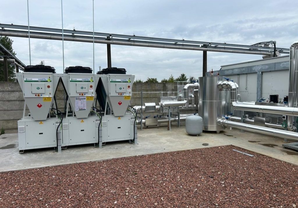 L’installation sert principalement à refroidir les laboratoires et à alimenter le groupe de traitement d’air avec récupération de chaleur, elle est raccordée aux réservoirs tampons existants. Les trois pompes à chaleur alimentent ensemble ces deux réservoirs tampons, l’un en eau glacé et l’autre en eau chaude. Les ballons tampons alimentent une centrale de traitement d’air et cette centrale de traitement d’air régule le climat de l’ensemble du bâtiment.