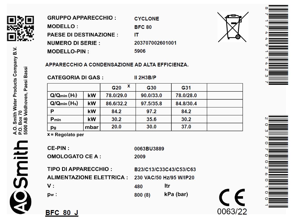 A sorozatszám az adattáblán található; az alábbihoz hasonló matrica (ez egy BFC Cyclone-hoz való):
