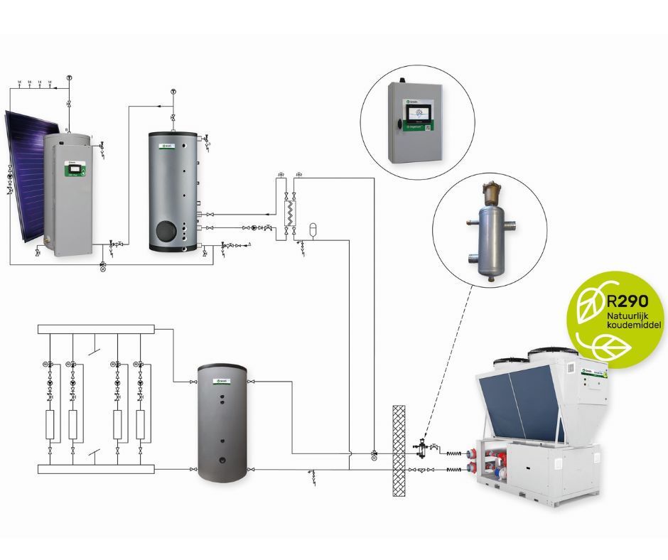 Door de jaren heen hebben we geleerd dat echte efficiëntie niet alleen uit één component bestaat, maar uit de manier waarop het hele systeem samenwerkt. Daarom draait onze complete Imperium totaaloplossing niet alleen om de controller. Deze integreert verbeterde voorraadvaten en krachtige stratificatietechnieken die de hitte gelaagdheid behouden. Het resultaat? Snellere verwarming wanneer jij dit nodig hebt, een flexibeler en efficiënter warmtepompsysteem en lager energieverbruik.