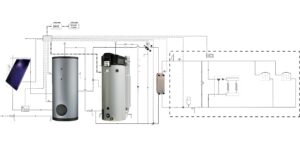 In dit voorbeeld wordt gebruik gemaakt van zonnecollectoren, een IT (indirecte boiler met voorraadvat), een SGS zonneboiler en Theta Dual Service.