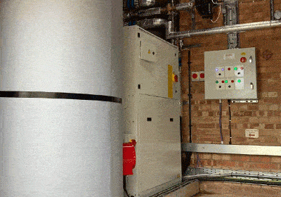 De renovatie van het gebouw omvatte geen vervanging van de radiatoren, dus om de juiste temperaturen in het gebouw te behouden, leverden we een tweetraps warmtepompsysteem bestaande uit een externe lucht/water-warmtepomp en een interne booster-warmtepomp die 147 kW levert bij een debiet van 78°C tegen ontwerpvoorwaarden. De renovatie van de bibliotheek omvatte ook de installatie van PV (photovoltaïsch) panelen met als doel om nul op de meter te realiseren.