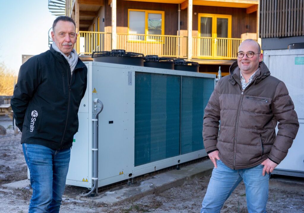 Er lag een uitdagende vraag: een warmwatervoorziening voor 172 kamers zonder gasaansluiting. Dan kom je niet bij de standaardoplossingen terecht. Sjaak Steller, Accountmanager bij Rensa Techniek, legt uit: “Na grondig onderzoek bleek de warmtepompoplossing van A.O. Smith het meest geschikt. Maar het bepalen van de locatie voor de warmteopwekking was ook geen eenvoudige klus. Het was niet mogelijk om dit te doen in de twee gebouwen van het hotel. Uiteindelijk hebben we ervoor gekozen om de warmteopwekking te plaatsen in het naastgelegen restaurant. Dit vereiste het overbruggen van een aanzienlijke afstand, wat we hebben opgelost met behulp van Microflex grondleidingen van Watts. Het resultaat was een omvangrijke installatie. Buiten staat een grote lucht/water warmtepomp: de Enevator Air Standaard van A.O. Smith met een vermogen van 93kW. Binnen staan nog eens drie vaten met totaal 9000 liter aan voorraad. Deze vaten worden door tussenkomst van de Envator Aqua Booster, een buffervat van 1500 liter en warmtewisselaars opgewarmd tot 70 graden. “Daarnaast droeg Rensa een oplossing aan voor het klimaat. Budgettair paste dit niet in het uiteindelijke plan, maar Rensa leverde wel alle benodigdheden voor het kanaalwerk.